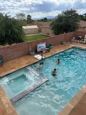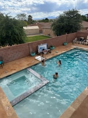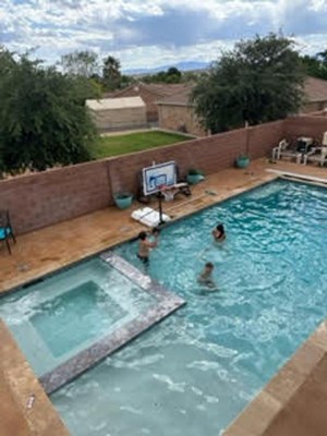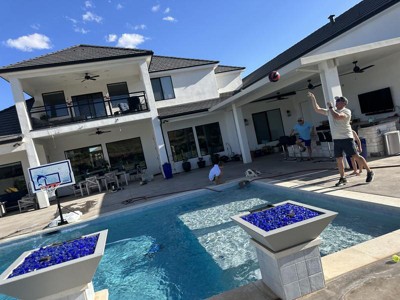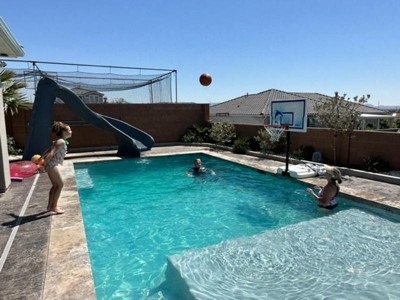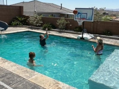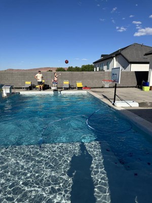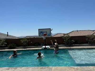 We are so happy with our new poolside basketball hoop! 💦 🏀