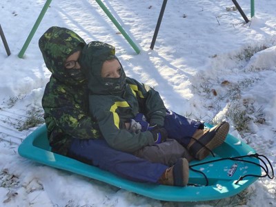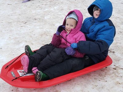 This sled is just like the Lifetime kayaks we love so much, really thick and durable. Durable = less plastic in landfills as this one is going to hold up for years. Easy to pull people in, and even used it for pulling wood out to a cabin. It can fit two kids easily, or an adult and a kid. It really zooms too! *We were provided the sled for review, but our honest assessment is that it’s great.