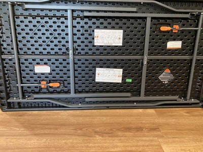 This is a fabulous table. I love the 5 foot size. The hardware is really classy looking. Easy to set up and take down. Goes really well with the black Lifetime chairs that I purchased to go with it.