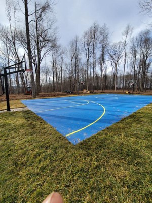 We purchased 2 of these last year for a court we put in our back yard. They are solid, have a great play with the glass backboard and the rim is tough as nails. The adjust mech is great and we can adjust it any height in seconds. We've been really happy with so far. Only complaint is the sticker to show the height came off one of them quickly. Would definitely recommend this product.