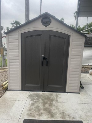 Lifetime 8' x 7.5' Outdoor Storage Shed Desert Sand: HDPE Construction, Weather-Resistant, 10-Year Warranty