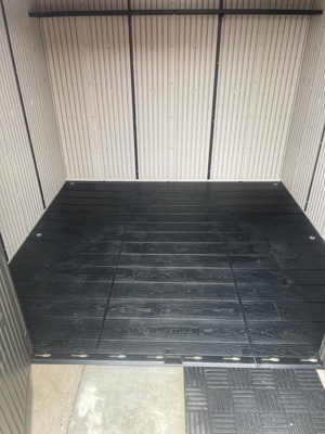 [This review was collected as part of a promotion.] After separating the parts, we tackled the construction of the shed. It was basically pretty straight forward and we set it up on our cement slab. We did have to go back to a part that we had not read correctly, but were able to go back and fix our mistake and utilizing two additional people, we completed construction in about 6 hours. The next day we cleaned the floor and attached it to the cement with screws and washers. We are excited about this opportunity with the shed and have begun to fill it with our outdoor supplies at our place.