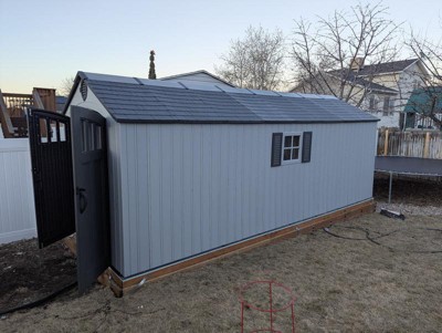 [This review was collected as part of a promotion.] I recently got this 8 ft. x 20 ft. storage shed, and I couldn’t be happier with both its look and functionality! The design is clean and modern, with a nice neutral color that blends well with my backyard.The shed assembly took roughly 7 hours with two people. With that said, it was straight forward and the instructions were clear.The double doors are wide and easy to open, plus they have a nice, smooth finish that adds to the overall aesthetic. It looks well-made without being too “industrial,” which is exactly what I was hoping for. One thing I love is the ventilation - it keeps things inside from getting too musty. Another thing I love is the space. It holds yard tools, power tools, miscellaneous items with ease. It also has windows and ceiling panels that allow natural light to enter. Overall, I’m really happy with this shed and would recommend it to anyone looking to declutter and organize their outdoor space!