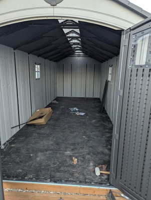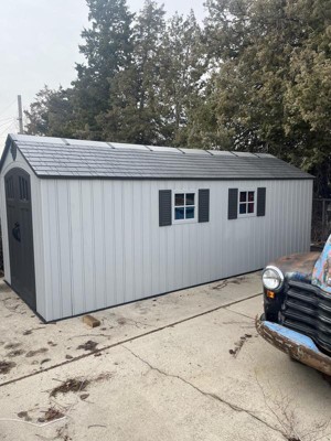 When you want extra space for lawn and garden storage while accenting the beauty of your backyard, the Lifetime 8 x 20-Foot Storage Shed has the space, design, and features you need. Access your storage easily using the centralized location of the doors and customize the interior organization with an adjustable shelving system. Bask in the natural light granted by ridge skylights and secure your goods with a lockable steel latch on the doors. This shed is made with heavy-duty steel trusses, high-density polyethylene, and a sturdy Double Wall System for exceptional strength and reliability. A high-pitched roof allows for quick drainage of rain and snow, and UV-protected surfacing will prevent sun and weather damage, while the slip- and impact-resistant floors keep things low maintenance for you. With decorative shutters, molded wood-grain panels, and a simulated shingled roof, it boasts an attractive design that will look great in your yard. To keep your space organized, well maintained, and beautiful, try the Lifetime 8 x 20-Foot Outdoor Storage Shed and enjoy the yard you’ve always dreamed of.