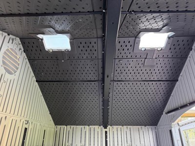 Make organization a breeze and declutter your garage with the right storage solution. The Lifetime 8’ x 5’ Shed is a stylish storage space that is strong, secure, and easy to maintain. The Double Wall System (DWS) and steel reinforcement provide incredible strength for long-lasting performance. The UV-protected and weather-resistant build combined with the excellent rain and snow drainage allows this shed to effectively withstand the elements. The steel-reinforced, lockable doors (lock not included) will give you excellent security for your belongings, and screened vents provide secure air flow. Stand firm on a slip-resistant floor and enjoy the many options for item storage offered by the height-adjustable shelves. Free up space in your garage and better organize your tools and equipment with a Lifetime 8’ x 5’ Shed.