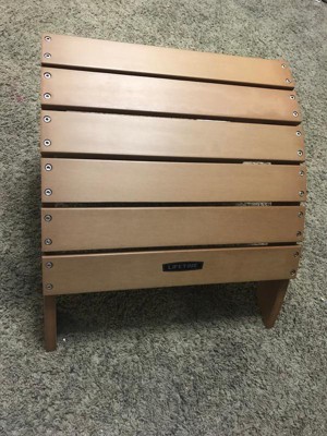 [This review was collected as part of a promotion.] I really like this Ottoman, it was very easy to assemble and is very sturdy. The materials will last a long time in the elements so that makes it worth the price. My kids always seem to find alternate uses for these types of things when I'm not using it so I have shown a few examples in the pictures. It fits nicely with any typical Adirondack chair, its very comfortable and easy to lift and move around. My kids often steal it to use as a stool to get into the hot tub and as a vault onto the trampoline. It's getting used plenty around here. Thanks Lifetime