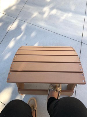 [This review was collected as part of a promotion.] This ottoman is solid-- heavier than I thought it would be. I do not own Lifetime brand adirondack chairs, but the high quality of this ottoman makes me wish I did. It looks and feels like real wood, and I can tell that it will outlast my plastic adirondack chairs by many years. I love that the design is heavy duty, but also sleek and attractive. It is the perfect size for putting your feet up while sitting on any adirondack chair.