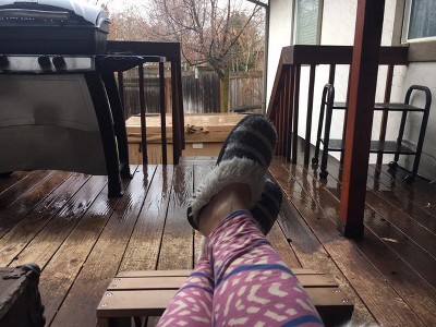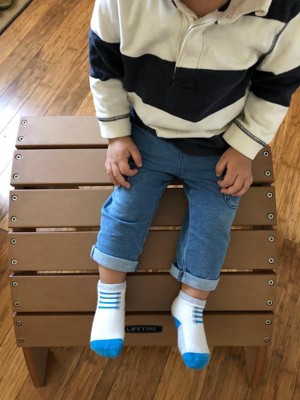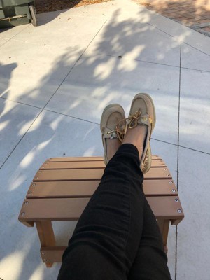 [This review was collected as part of a promotion.] We found this Lifetime Adirondack Chair Ottoman to be well-made; it seems like it will be able to withstand outdoors and inclement weather, unlike our wooden chairs (also pictured). The ottoman is sturdy and VERY easy to put together when you purchase it —only took minutes; not a weekend project (just needed to screw the leg to the ottoman). The height is good, even though our chairs are a little bit higher, it’s still a good height for resting your legs, and also has a nice ledge if you want to rest your foot (pic 5). If you have little ones, it also has a nice incline to serve as a little slide for your toddler to play on! The color is pretty neutral and can match most chairs, but also seems like you can paint it to match your existing chairs (or like us, paint your chairs to match your new ottoman)! Finally, as a note, you may need to put some kind of covering as it seems like it may stain easily – already has a few marks from toddler’s greasy hands!
