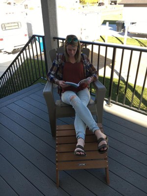 [This review was collected as part of a promotion.] I received product in exchange for an honest review. I was not compensated in any other way. I love to sit out on the porch and relax while I read a book, I have the Lifetime Adirondack chair and it has been an excellent, comfortable way to do this! But, I LOVE putting my feet up when I'm relaxing, so I've just been using a folding chair to do it. This is SOOO much better! I can push the ottoman right up against the chair for a relaxed, lounge. My husband can move it a bit further away for his longer legs. I even realized another trick, if I want my legs up a bit higher, I just turned it around! My son even likes just using it as a little seat itself. Incredibly simple to put together, it took me less than 5 minutes on my own. Excellent quality, looks and feels like high quality wood. This was a great addition to our Adirondack chair and I highly recommend it!