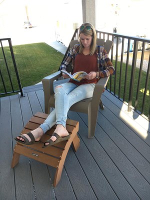 [This review was collected as part of a promotion.] Love this! I can relax with a throw and my coffee and put my feet up while I watch the kids play. It’s super sturdy....I have 4 kids that climb on it. It goes perfectly with my Adirondack. Sometimes the little ones use it as a stool and sit with me. It looks great. I highly recommend this if you have an Adirondack.