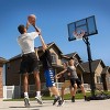 This portable basketball system from Lifetime Products features a 52 inch Steel-Framed Shatterproof tinted backboard with a Power Lift® height adjustment mechanism that adjusts from 7.5 to 10 feet high in infinite height increments. The new Clearview Backboard eliminates backboard braces to increase stability and target visibility. It also includes a Slam-It® rim with an all-weather net and a 3.5 inch diameter round steel pole. With a 39-gallon portable base, this system can easily be moved to a desired location. So bring the arena to your home with a residential basketball system from Lifetime Products.