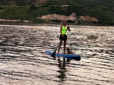 [This review was collected as part of a promotion.] I like the larger paddleboard the best for doing yoga. It has a nice large flat surface for balancing.