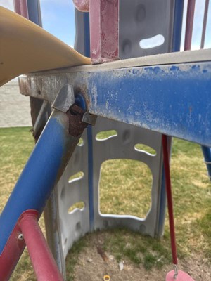 I purchased this set several years ago and it rusted from the inside out making it unsafe to use. It started rusting the second year I owned it. I also purchased the jeep and airplane teeter totter and they all rusted the same way. These are very expensive play sets that do not last.