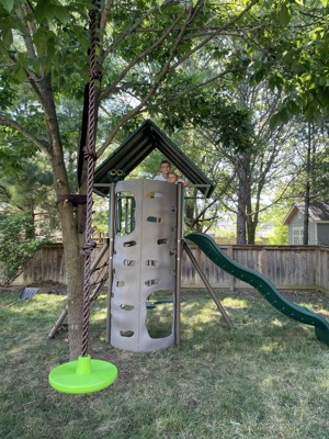 [This review was collected as part of a promotion.] This set is big, sturdy, and looks nice. The colors don’t draw your eye, so it looks great in the yard and isn’t distracting. My 3 year old and 7 year old love it and my 10 year old isn’t too big to enjoy it with them from time to time. It was a lot of work to set up (my husband and I worked all day), but will last for years to come with no maintenance. And because there is no wood we don’t have to worry about carpenter bees and restaining. We love it!