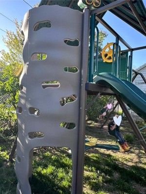 [This review was collected as part of a promotion.] We love this lifetime play-set! The assembly was not super complicated but was definitely time consuming- we went slow to be sure we did each step correctly, and a few times we had to back track, but thanks to a careful pace we didn’t have to do that often and didn’t have to undo very much at all. The instructions seemed easy to follow, but we also found a video on YouTube showing the assembly, and this helped us as we are visual learners. All the pieces and parts came without harm, every bolt and screw we needed was included, you will need a drill to complete this project if you do it on our own. The play-set once completed is tall, it includes a rope ladder, a “rock” climbing wall, a metal ladder, a slide, a platform that all of those lead to, and swings. Two seat swings and one hanging swing, with handles. The swings are attached by thick carabiners, so if you wanted to swap them out with a baby swing or something like that, it would be simple to do and secure. Everything is supported well, and we as adults have used the swings and didn’t move the play-set. Though maybe we could have if we had a “who can swing higher” competition ;). And since our children are little we walked through how to go up and down both the rope ladder and metal ladder, as well as the climbing wall, so that we didn’t worry about them doing so on their own. The pictures attached show the main frame of the player with the ladders and slide: what we were able to assemble on a Saturday, and then the others show it completed, which was finished on two different weeknights. As we said before, assembly was simple but definitely time consuming. Our kids absolutely love it and it has made going outside way more appealing, though you may be stuck as a swing pusher if you get it ;). This makes the warmer days so much more fun, and way better than the kids begging for show after show! (Hallelujah!) We would recommend this to anyone; our children are under 5, and I’m glad we got something that they can enjoy now and still enjoy when they’re older. We have relatives with a similar model, and their 10 and 12 year old kids enjoy swinging and playing too! And with its high quality metal structure and other materials, we foresee it lasting for decades!