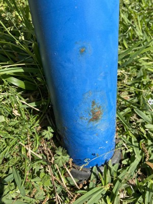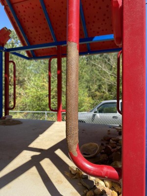 We’re sorry to hear that your playset is rusting. Earlier versions of our playsets were built with non-galvanized, powder-coated steel, but we’ve since upgraded to galvanized steel for significantly improved rust resistance and long-term durability. This change was made in direct response to customer feedback, and we’re confident it will provide a better experience for future customers. If you purchased an earlier version and are experiencing rust issues, we want to help. Please reach out to our Customer Service team so we can work with you to make this right. They can be contacted through Live Chat on our website (lifetime.com) Monday-Friday, or over the phone Mondays, Tuesdays, and Thursdays at (800) 225-3865. They can also be reached by email at customercare@lifetime.com. Customer Service hours are from 7:00 am to 5:00 pm (MT). We appreciate your feedback and are committed to standing behind our products.
