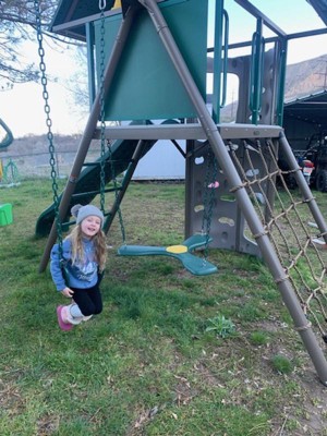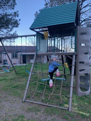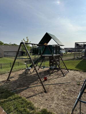 [This review was collected as part of a promotion.] We just assembled this playground but love it! It is exactly what we want for the 2 grandkids and other neighborhood kids. Compact but has everything we want: slide, climbing wall, big kid swing, trapeze, and we bought a bucket swing for the baby to replace the 2nd big kid swing, for now. Love it!