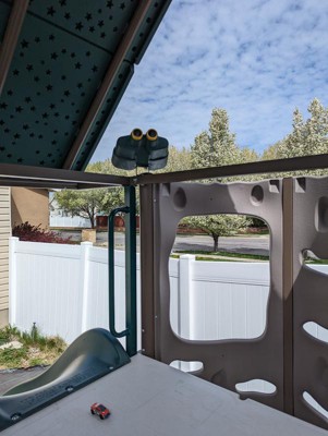 Give your kids the playset they’ll cherish for years and make lasting memories on—the Lifetime Big Stuff Swing Set is a complete play system with all the features that families need for enriching, safe, and diverse fun. Children can imagine new worlds inside their very own clubhouse with a hardtop roof, and have active and exciting fun on the trapeze bar and double swings. A 9-foot wavy slide makes your own backyard a playground at home, and a ship’s wheel and binoculars in the club playhouse give kids the tools to let their imaginations run wild. With a side climbing wall and rope ladder, there’s something for kids of all ages to play on and enjoy. The Big Stuff Swing Set is made for safety and low maintenance—it is built with zero lead-based materials, features rounded edges or plastic caps on corners, and exceeds all Playground Performance and Safety Standards. This home playset is free standing which requires no cement. It needs no painting or staining, and is made with all-weather resistant and UV-protected material. The playset won’t crack, warp, rot, or splinter, and it will maintain its strength and color. Exceptionally strong powder-coated and galvanized steel will prevent rust and ensure integrity and durability. The Lifetime Big Stuff Swing Set is a play system that gives children everything they need for endless fun and parents the safety and low maintenance they can enjoy.