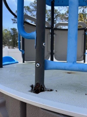 We’re sorry to hear that your playset is rusting. Earlier versions of our playsets were built with non-galvanized, powder-coated steel, but we’ve since upgraded to galvanized steel for significantly improved rust resistance and long-term durability. This change was made in direct response to customer feedback, and we’re confident it will provide a better experience for future customers. If you purchased an earlier version and are experiencing rust issues, we want to help. Please reach out to our Customer Service team so we can work with you to make this right. They can be contacted through Live Chat on our website (lifetime.com) Monday-Friday, or over the phone Mondays, Tuesdays, and Thursdays at (800) 225-3865. They can also be reached by email at customercare@lifetime.com. Customer Service hours are from 7:00 am to 5:00 pm (MT). We appreciate your feedback and are committed to standing behind our products.