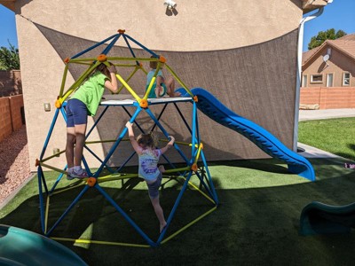 The kids love this. I am hoping it stands in the Florida humidity. I've had a lifetime climbing dome before but had rusted out. A little hard to put together on top. It was tight but other than that, it's nice and tall for the kids to be able to slide down it.