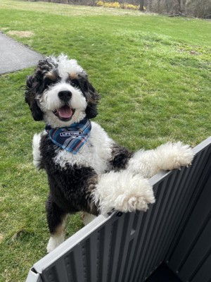 [This review was collected as part of a promotion.] Our pups love this dog house. The easy to lift lid makes cleaning a breeze and I love the colors and aesthetic of the design. It’s made a great addition to our backyard and our dogs love hanging out in it while we enjoy the outdoors now that the weather is nice! The quality is amazing and the set up was SO easy!