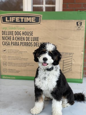 I bought this Lifetime Deluxe Dog House (Large) a few months ago. It is very well engineered. Lifetime thought of everything when designing this dog house. The assembly was very quick and easy with the directions included. The gas piston assist roof works very well and makes it very easy to clean. It is completely dry in the rain. The divided space is a great in the winter for keeping the dog warm. All in all this is a very durable product, and I would definitely recommend this dog house.