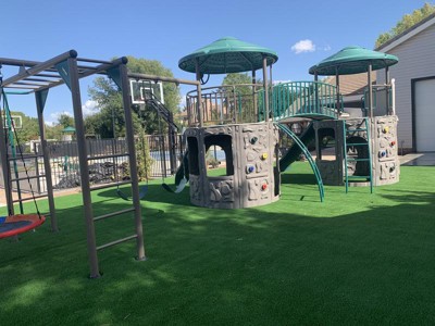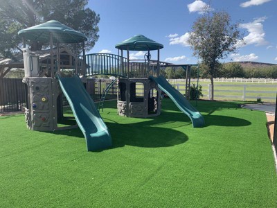We’re about to become a family of 4 so we upgraded our playset to this magnificent structure. It is made to last for a super long time, durable and safe. A team of 2 men assembled it in 1 full day. I love that it goes right on the grass which makes it an easy install. Our kids play on it everyday, it’s like having a private park in our backyard. I could never go back to a regular wood playset. These materials do not weather like cedar, and no splinters. The swings are top notch and have a better pendulum than the wood swing sets. Excellent playset, amazing for our family and I would recommend to anyone looking to upgrade their playground.