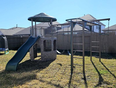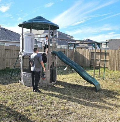 [This review was collected as part of a promotion.] The lifetime playset that we received took us a bit due to unforseen weather conditions but once the weather finally cleared up we got it done fairly quickly together. The instructions were very straight forward and labeled the internal packaging well in each box. Be sure to have the extra tools it recommends since they are crucial to completing assembly. Some of my favorite features are the monkey bars and also the amazing detail in the plastic work for the top tower floor. My kids had a blast playing with their cars on the roads and mini town etched in. By far my favorite feature is the anchoring for the tower. This gave me such peace of mind, I don't think a tornado would take this set from the ground without a lot of efffort. The size of our playset is perfect for our yard with plenty of room around it for safety. My kids love their new playset and it is now a chore just to get them off of it.