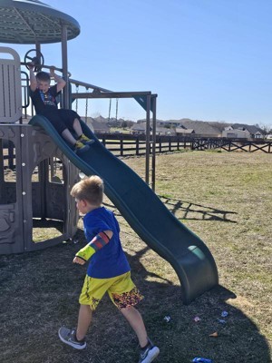 [This review was collected as part of a promotion.] My kids are loving their new Lifetime Adventure Tower Deluxe Playset! It has all their favorite features from our local park, and it's now in our backyard! Rockwall, swings, slide, "secret base" thats two stories! They even have a little street on thr top floor to play cars on. Assembly was a little intimidating, but me and my husband did it over a two day span, with basic tools and no experience. They have a youtube video where you can watch someone build it step by step which helped a ton. My kids are very happy with it and it has enough different features to keep them occupied.