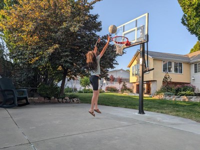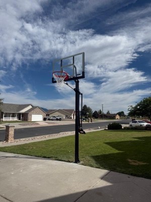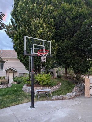 [This review was collected as part of a promotion.] This hoop didn’t take long to install (a few hours). The instructions were straight forward and the supplemental video was very useful. We poured the concrete footing ourselves and I think that turned out great too. It’s solid! The base is very sturdy and bolts on easily. The rim is also very well made and rebounds just like a professional hoop. I would definitely get this basketball hoop again! Love the tempered glass backboard and 54 inches is the perfect size for our space. The hydraulic pump is easy to use and it’s nice that it comes with a safety lock. If you’re considering getting this, do it! You won’t regret it.