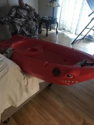 [This review was collected as part of a promotion.] What did you/your child think of the design? They loved the shark design said it was awesome. What are your favorite features? Favorite features are the steadiness of the kayak when getting off and on the ease of use and how easy it is to navigate with the paddles. What did you think about the color? The bright red color is a great color as it can be easily spotted if your kayaking with a group and the color along with shark design sets it apart from others.