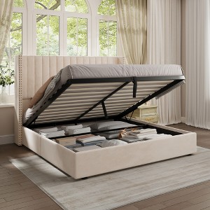 AMERLIFE Lift Up Storage Bed Frame,Upholstered Platform Bed Velvet