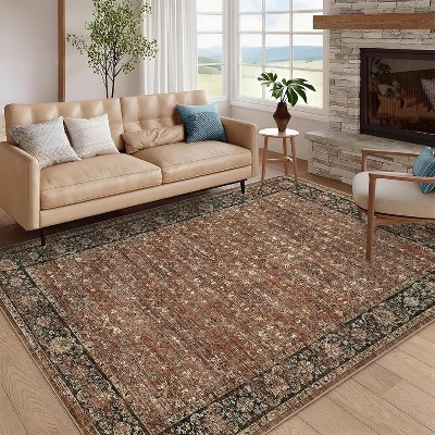 Light Brown 10x13 Ft Vintage Printed Rug – Washable, Non-Slip, Traditional Low Pile for Dining Room & Bedroom