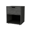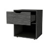 Elevate your bedroom with our sleek nightstand, seamlessly blending style with practicality to enhance organization and elegance in your decor. Featuring a convenient top drawer perfect for bedtime essentials and an open shelf below for displaying books or decorative items, this nightstand is crafted from high-quality manufactured wood for durability and timeless appeal.