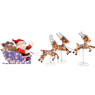 3. Easy Assembly: This collapsible Xmas decor can be set up in minutes, allowing you to enjoy your festive display without hassle. The lights are pre-installed, simply connect the wires and plug them in to watch the reindeer come to life.