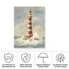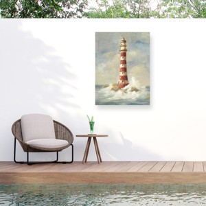 This ready to hang, gallery-wrapped art piece features a red and white lighthouse in the center of the frame.Prominent Colors: White, Tan, Grey, Red, BrownDanhui Nai was born in mainland China and raised in an artistic household with her sculptor father and painter mother. Her natural passion for art was guided through classical training which she applies in her California studio to create beautiful, on-trend artwork in a variety of media. She studied interior design later in Paris and New York City. She worked in the textile industry in Manhattan, where she continued her studies and artistic development.The Outdoor Canvas Art by Trademark Fine Art is a great way to add a pop of color to your poolside, balcony, backyard, garden, or porch. This all-weather outdoor decor is printed with UV gel inks to prevent fading for years to come. These colorful outdoor pictures for the patio have been digitally reproduced, printed on all-weather artist canvas, stretched, and gallery wrapped on all-season stretcher bars for a clean finish.