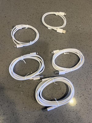 Lightning to USB-A Charging Cables (3'/3'/6'/6'/10') 5pk - dealworthy™ White