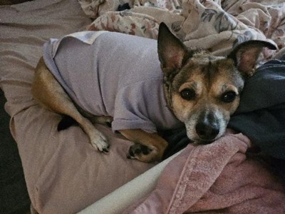 It’s very cute but it runs a little small. Fit cropped and a little tight on my 14 lb schnauzer mix