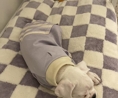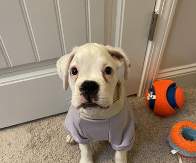 I ordered a medium for my 11 week old boxer puppy. It’s baggy and long on her, but she’ll grow into it. I love the color and how soft it is. Super cute!