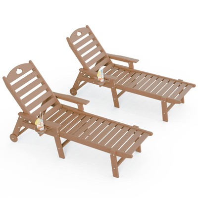 LIKEPAY High-Density Polyethylene Recliner Lounge Chair with 5-Level Adjustment Back and Smooth Rolling Wheels and Cup-Holder