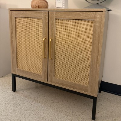 LIKEPAY Rattan Buffet 2-Door Black Storage Sideboard Cabinet with Adjustable Legs