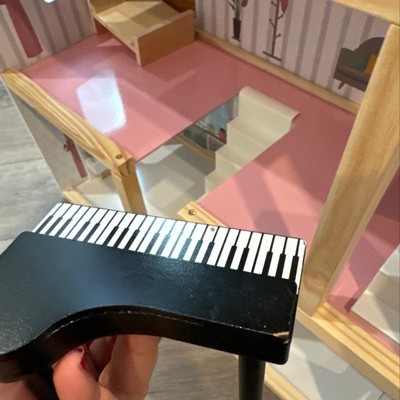 - Dollhouses with 17 accessories: couch, lamp, table, chairs, bathtub, toilet, piano, bench, TV & more.