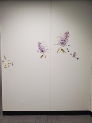 The blooms are not lilac colored and are not an attractive purple color. (I bought another decal at the same time. The colors are beautiful, and the decal works great--sticks and unsticks for repositioning.)