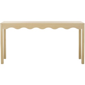 Make a statement with the Lilith Wavy 63" Console in a striking natural finish. This stunning piece features a unique wavy design that adds texture and visual interest to any room. The expansive 63" frame offers generous surface space for your decor, while the sleek lines and warm natural tones create a timeless, sophisticated look. Perfect for living rooms, entryways, or as a media console, the Lilith Console blends style and functionality seamlessly. Whether showcasing art, plants, or electronics, this console is a bold yet elegant addition to your home.