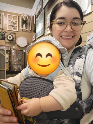 A: I purchased this as a gift for my son and daughter in law. I did use it a few times. It was a little more complicated that the Baby Bjorn, but not by much. Once I used it a couple times, it was fine.
