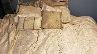 [This review was collected as part of a promotion.] This comforter set is so elegant yet useful! It provides a warm color to the room but because of the material and design it creates an elegant feel. My master bedroom is now very put together and model room quality. I love the element of sequins which gives it that shine and sparkle that I love! However, it is subtle enough that it’s not gaudy or over powering. The fact that this set comes with pillows AND pillow covers is amazing! Now everything is coordinated and feels put together. The comforter keeps you warm during the night. The quality of the stitching and the material show that this comforter set will last a long time. I threw this the one wash and it held up very well - no loose stitches or sequins came off. This is a set that will and is lasting through kids and a dog!