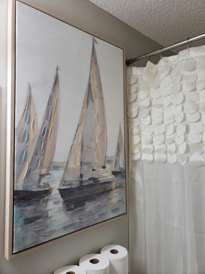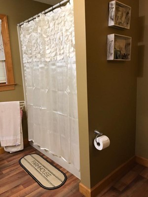 Bought two white shower curtains for our restrooms. We had the purple before and loved how eloquent it looked. Moving and decided to make both restrooms white and silver to keep it simple. Love how simple and eloquent it looks!