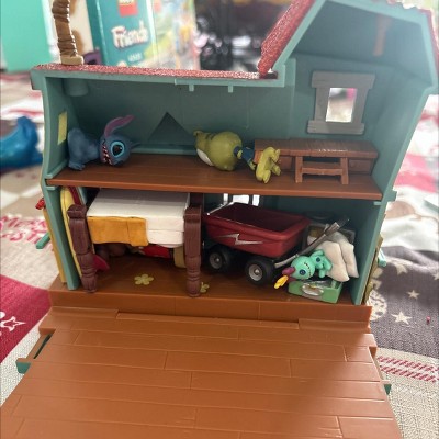 - Molded Lilo's House carry case with glitter elements opens up to become a landscape play environment.