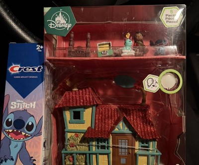 We love these mini play sets. My kids collect them and stitch was the perfect addition! The pieces hover over spots on the house and turn on a light, play music, open a door.