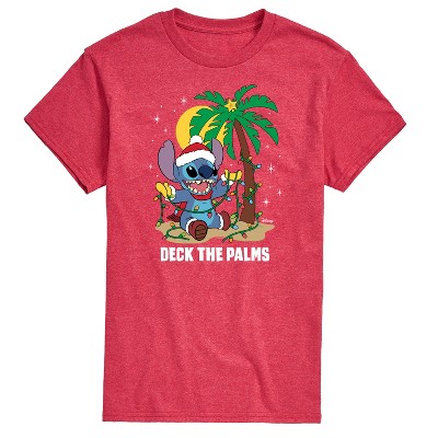 Lilo & Stitch - Deck The Palms Christmas - Women's Short Sleeve Graphic T-Shirt - Celebrate the ohana with Lilo & Stitch graphic apparel, blending new visuals with classic heartwarming moments featuring Lilo, Stitch, and the bonds of family.